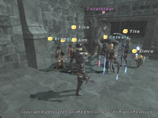 タウルスがわきわき歩く広間の奥に不気味な影。準備を整えて、いざ、仕掛けると、